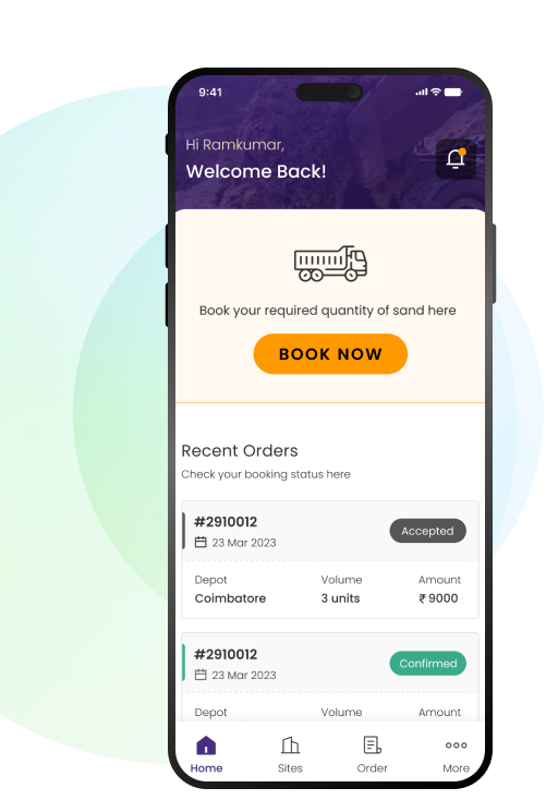 Enjoy the all-new simplified sand booking process. The following is a clear and concise overview of the procedure to book sand through the app.